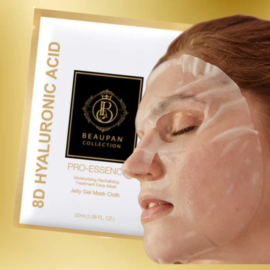 Máscara facial de tratamento hidratante e revitalizante com ácido hialurônico PRO-ESSENCE 8D | Máscara facial de 5 folhas x 0,9 fl. oz. (28 ml) | Máscaras faciais antienvelhecimento para mulheres | Máscara facial hidratante para todos os tipos de pele – Máscaras faciais hidratantes e hidratantes – Reconstrói e reabastece a pele – Enriquecida com antioxidantes vegetais como Gentiana scabra – Melhora a elasticidade e a firmeza da pele – Aumenta o sistema de reparo natural da pele – Propriedades antienvelhecimento para uma pele mais brilhante e suave – Ataca os sinais de envelhecimento para uma pele com aparência mais jovem – Adequado para peles com tendência a acne – Enriquecido com ácido hialurônico para uma pele hidratada e elástica — Ajuda a reduzir a aparência de rugas e linhas