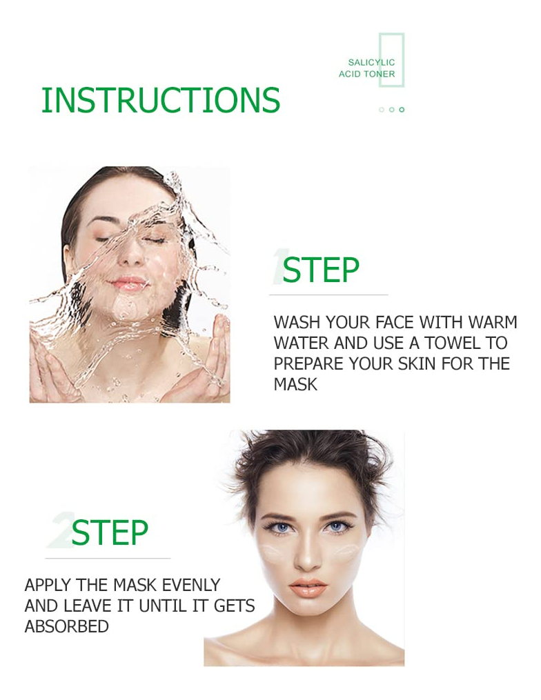 Contém ácido salicílico, extrato de folha de centella asiática, niacinamida, hialuronato de sódio, ceramida 3 e outros ingredientes para o cuidado da pele; textura flexível e macia, sedosa e macia ao toque, refrescante e não pegajosa, controla a oleosidade e a acne, ajuda a melhorar a desidratação da pele devido ao ressecamento, repõe a umidade da pele, retém a umidade da pele sem perda, fácil de absorver, hidratando a pele, cuidando delicadamente, mostrando uma pele feminina elástica, hidratante e suculenta. Ingredientes: Água, propilenoglicol, betaína, alantoína, carbômero, trietanolamina, metilparabeno, extrato de folha de Centella Asiatica (CENTELLA ASIATICA), niacinamida, ceramida 3, hialuronato de sódio, bis (metilol) imidazolidinil ureia, iodopropinil butil carbamato, Óleo de rícino hidrogenado PEG-40, fragrância, ácido salicílico. Como usar: Após a limpeza antes de ir para a cama, coloque uma quantidade adequada deste produto na ponta do nariz, bochechas, testa e queixo e espalhe suavemente pela pele de dentro para fora (cuidado para evitar os olhos e lábios), você pode deixá-lo fora durante a noite, pode ser limpo no dia seguinte. Precauções: Se houver desconforto ou reação anormal da pele, pare de usá-lo. Evite o contato com os olhos, enxágue com água se entrar em contato com os olhos; somente para uso externo; mantenha em local fresco e evite altas temperaturas e luz solar direta; o ácido salicílico é usado neste produto como agente condicionador da pele; este produto contém ácido salicílico, não para crianças menores de três anos. – Contém ácido salicílico, extrato de folha de centella asiática, niacinamida, hialuronato de sódio, ceramida ide 3 e outros ingredientes para o cuidado da pele; textura macia e macia, sedosa e macia ao toque, refrescante e não pegajosa, controla a oleosidade e a acne – ajuda a melhorar a pele desidratado devido ao ressecamento, repõe a umidade da pele, retém a umidade da pele sem perdas, é fácil de absorver, hidrata a pele, cuida delicadamente, mostrando uma pele feminina elástica, hidratante e suculenta. – Após a limpeza antes de ir para a cama, aplique uma quantidade adequada deste produto na ponta do nariz, bochechas, testa e queixo e espalhe suavemente pela pele de dentro para fora (cuidado para evitar os olhos e lábios), você pode deixá-lo fora durante a noite, pode ser limpo no dia seguinte. – Evite o contato com os olhos, enxágue com água se entrar em contato com os olhos; somente para uso externo; mantenha em local fresco e evite altas temperaturas e luz solar direta; o ácido salicílico é usado neste produto como agente condicionador da pele, este produto contém ácido salicílico, não para crianças menores de três anos.