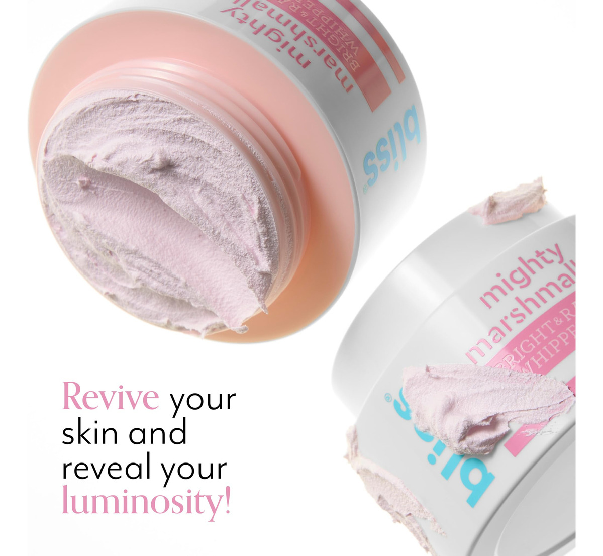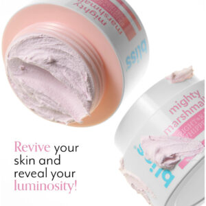 Máscara batida Bliss Mighty Marshmallow Bright & Radiant — Máscara facial iluminadora e hidratante — 1,7 onças — Pele luminosa — Limpa — Vegana e livre de crueldade — Todos os tipos de pele — MIGHTY MARSHMALLOW: esta máscara rosa de marshmallow que melhora o brilho é adequada para todos os tipos de pele, inclusive seca e sensível. – MÁSCARA FACIAL CLAREADORA E HIDRATANTE CHICOTEADA: luta para restaurar uma pele seca e sensível. tez sem brilho? Insira esta máscara facial de hidratação da Bliss! Cada tratamento ajuda a nutrir e hidratar a pele para um acabamento luminoso e mais radiante. – ALIMENTADO POR INGREDIENTES NATURAIS: Como todos os seus produtos favoritos da Bliss, esta máscara facial hidratante é alimentada por ingredientes naturais. O extrato de raiz de marshmallow ajuda a hidratar a pele seca, enquanto uma mistura de vitamina C ajuda a iluminar e promover um tom uniforme. – APENAS 15 MINUTOS PARA UMA PELE MAIS BRILHANTE: esta máscara facial iluminadora revelará brilho e hidratação intensa! – em apenas 15 minutos. Faça parte de seu regime regular de beleza. – COMO APLICAR: Espalhe uma camada grossa na pele limpa e seca, evitando a área dos olhos. Deixe agir por 10 a 15 minutos. Enxágue bem. Use 2-3 vezes por semana.