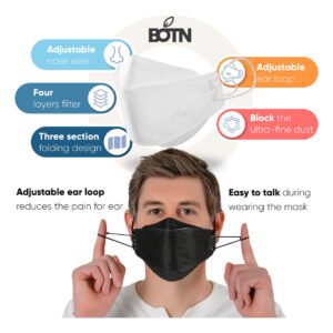 BOTN masks are individually wrapped and shipped as shown in the product picture. – size dimension : ideal for child (eligible age : 4 to 6) (W 7.2 x H 2.6), folded in half (4.9), Earloop(9.4) – Nonwoven Fabric – Adjustable Strap closure – MADE IN KOREA: BOTN masks are made in Korea – PATENTED EARLOOP ADJUSTMENT : makes it easy to adjust or tighten the mask whenever necessary. It relieves ear pain even when wearing it for a long time. – COMFORTABLE NOSEWIRE : Soft wire supports adhere to the nose to prevent slipping and your glasses from getting wet. – 3D DESIGN : BOTN masks are designed according to the shape of the human face to ensure tightness and comfortable breathing. – SANITARY INDIVIDUAL PACKAGING : Each mask is packaged separately for hygienic purposes. – MASK FOR EVERYONE : This is a mens and womens product that can be worn regardless of the size of the face. You can adjust the size of the mask easily. – NEED TO WEAR : It can be applied to homes, offices, schools, parks, playgrounds, indoor, outdoor and crowded public places. Wear a mask wherever you are to protect yourself.