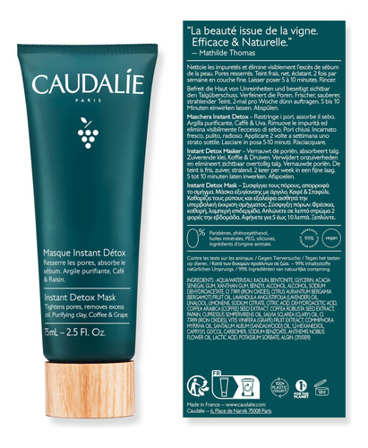 – RESULTADOS CLÍNICOS: 100% viram um efeito desintoxicante na pele, 95% viram os poros apertados e 90% viram uma pele luminosa.* *Estudo clínico,% de satisfação, 21 voluntários, 21 dias. – INGREDIENTES: A argila rosa limpa as impurezas visíveis enquanto reforça a aparência de poros. A cafeína natural suaviza e ilumina visivelmente a pele. O extrato de uva fornece benefícios antioxidantes e ajuda a limitar a oxidação do sebo responsável pelos cravos.