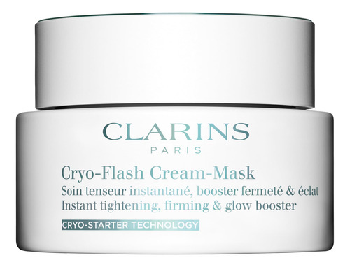 Máscara facial CLARINS Cryo-Flash | Efeito lifting visível em 10 minutos* | Minimiza visivelmente os poros | Aumenta o brilho | Resultados semelhantes aos profissionais | Todos os tipos de pele | 2,5 onças fluidas — Uma máscara de 10 minutos que fornece resultados profissionais para um efeito lifting instantâneo. Formulado com 93% de ingredientes naturais, incluindo uma mistura da molécula MGA, um derivado refrescante do mentol e extrato de prímula que combate as rugas – Aplique 2 a 3 vezes por semana para obter uma pele visivelmente mais firme, lisa e firme com um brilho mais saudável. – Aplique uma camada espessa sobre o rosto, evitando a área dos olhos. Deixe agir por 10 minutos. Passe um lenço ou enxágue o excesso e siga com um sérum e hidratante Clarins de sua escolha.
