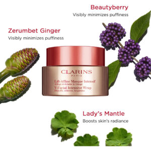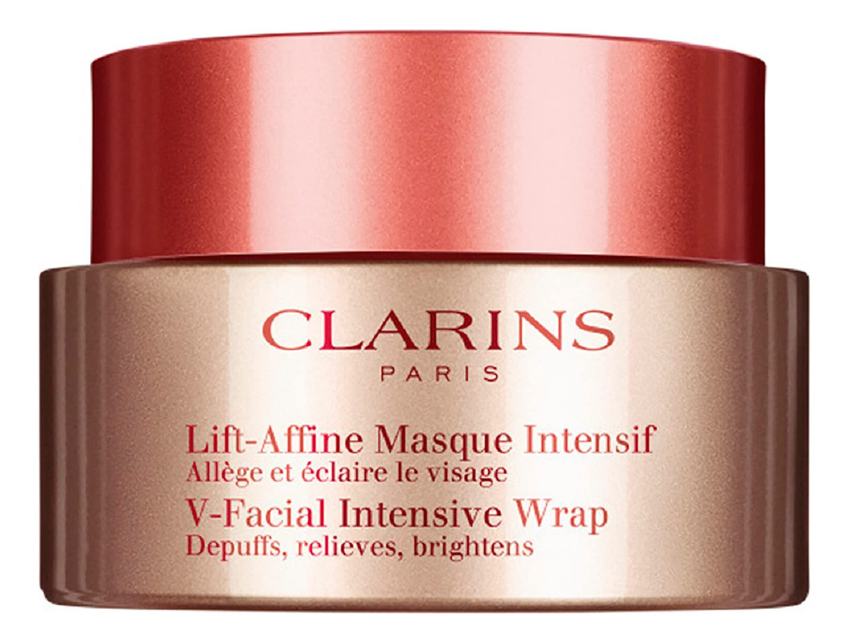Máscara facial Clarins V-Facial Intensive Wrap | Máscara de contorno facial premiada | Reduz visivelmente o inchaço e o inchaço causados pelo estresse, calor e alterações hormonais | Promove um tom de pele uniforme | 2,5 onças – Uma máscara de ação tripla que refina a aparência dos contornos faciais, ilumina a pele e restaura o brilho – Suaviza e protege a pele – Para todos os tipos de pele – Dimensão da embalagem do item: 3,0" L x 3,0 0 polegadas de largura x 3,0 polegadas de altura