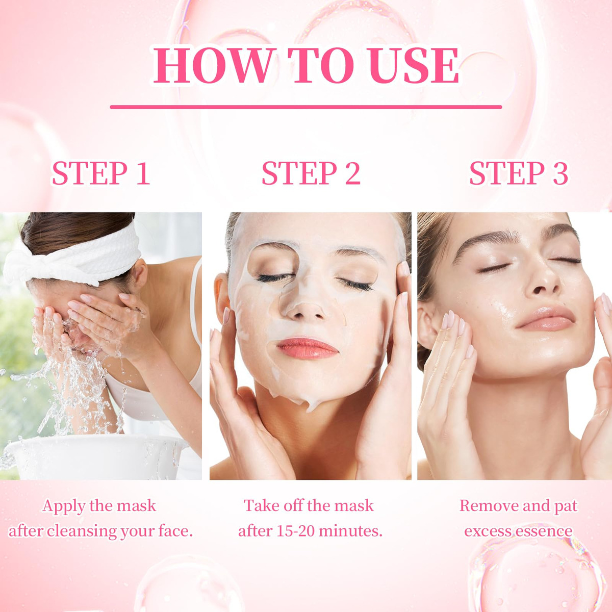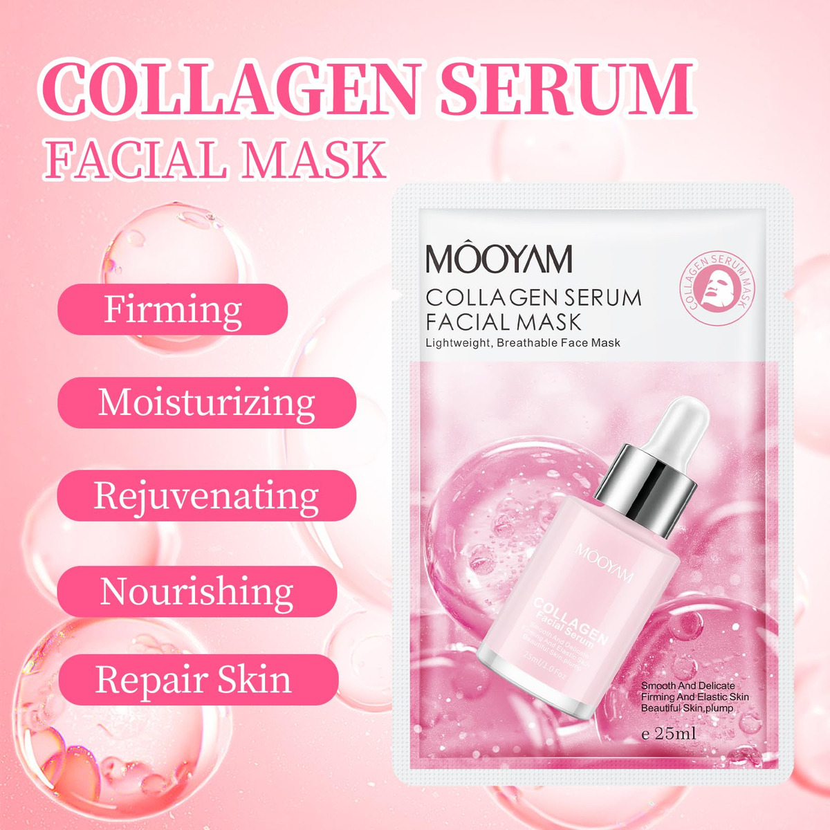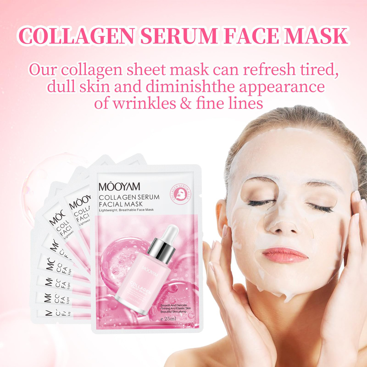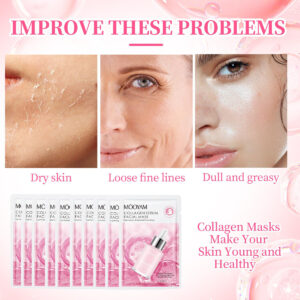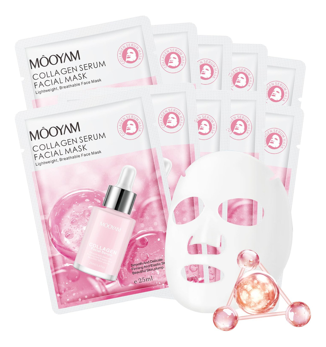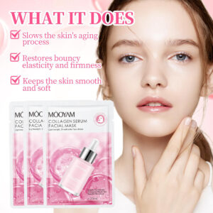 Máscara facial de colágeno Máscaras faciais hidratantes para cuidados com a pele — LEVES E RESPIRÁVEIS: nossa máscara facial de sérum de colágeno foi projetada com um material leve e respirável que garante ótima absorção e conforto durante o uso. – SUAVE E DELICADA: Experimente a textura sedosa e delicada de nossa máscara, que desliza facilmente sobre sua pele, proporcionando um tratamento indulgente semelhante ao de um spa em casa. – Pele firme e elástica: infundida com poderosos ingredientes de colágeno, esta máscara promove uma pele mais firme e elástica, ajudando a reduzir a aparência de linhas finas e melhore a textura geral da pele. – BENEFÍCIOS HIDRATANTES: Diga adeus à pele seca! Nossa máscara facial de soro de colágeno hidrata profundamente a pele, deixando-a hidratada e carnuda para um brilho radiante. – REJUVENESCEDORA E NUTRITIVA: Esta máscara rejuvenescedora atua diligentemente para nutrir e reparar sua pele, restaurando sua vitalidade natural e promovendo uma aparência jovem.