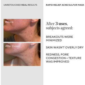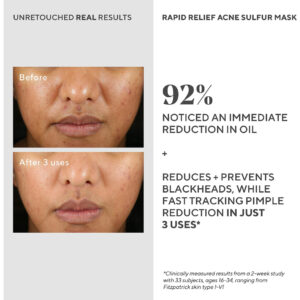 A máscara de enxofre para acne Murads Rapid Relief é um tratamento suave e poderoso para acne que aproveita os benefícios do enxofre, um ingrediente renomado conhecido por combater bactérias, reduzir o excesso de óleo, desobstruir os poros e aliviar os sintomas da acne. Com a adição de argila de caulim, ácido salicílico e óleo essencial de eucalipto, ele oferece um impulso extra nas propriedades de combate à acne, ao mesmo tempo que acalma a pele para reduzir a vermelhidão. Com suas propriedades clareadoras e esfoliantes, essa máscara facial ajuda a melhorar a textura e a aparência da pele. Desfrute de uma esfoliação suave que remove as células mortas da pele para limpar os poros e reduzir os cravos, deixando a pele mais lisa e radiante. Experimente todos os benefícios que esta máscara de argila de caulim tem a oferecer à sua pele. Descubra o caminho para uma pele mais clara e saudável com este tratamento para acne com enxofre. – TRATAMENTO DIRECIONADO: Essa forte combinação de enxofre e ácido salicílico ajuda a limpar espinhas e controlar erupções cutâneas, ao mesmo tempo que hidrata a pele para limitar o ressecamento excessivo. – ESFOLIANTE DE ENXOFRE: fórmula poderosa reduz o excesso de oleosidade, desobstrui os poros e melhora o controle da acne e manchas com uma esfoliação suave; reduz o odor tradicional de enxofre para uma experiência sensorial mais agradável. – REDUTOR DE VERMELHIDÃO: sinta-se mais confiante com este auxiliar de erupções cutâneas; calmante O extrato de turfa austríaco ajuda a acalmar a vermelhidão associada à pele propensa a acne; projetado para ser removido praticamente sem esforço para uma experiência de cuidado com a pele suave e confortável. – MÁSCARA HIDRATANTE DE ARGILA DE CAULIM: a argila purificante de caulim limpa profundamente a pele, remove as impurezas e reduz a aparência de espinhas; a máscara suave e sedosa é lavada facilmente – sem precisar puxar, puxar ou limpar excessivamente. – COMO FAZER USO: Limpe o rosto e aplique uma camada uniforme da máscara em todo o rosto, evitando a área dos olhos. Deixe a máscara secar por 10 a 15 minutos e depois enxágue com água morna, massageando suavemente a pele em movimentos circulares para aumentar a esfoliação.