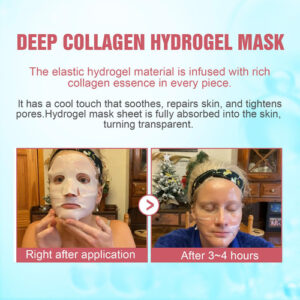 Máscaras faciais de colágeno Máscara de gel para toda a noite, hidratação e reparo profundos: o ácido hialurônico hidrolisado na máscara facial profunda de colágeno pode penetrar mais profundamente na pele, reter a umidade e fornecer hidratação duradoura. A máscara de colágeno também pode reparar a pele, melhorar o tom de pele irregular e áspero e fazer com que a pele brilhe com um brilho saudável. – Firmador de poros: rico em colágeno e soro de baixo peso molecular, é mais fácil de penetrar e absorver, aumenta a elasticidade da pele, melhora os poros e suaviza as linhas finas. – Levanta e fortalece a barreira cutânea: gel de gelatina de colágeno A máscara é rica em Chondrus Crispus e adenosina, ajudando a reduzir os poros, prevenir o envelhecimento da pele e levantar a pele. Fortalecer a barreira cutânea e fazer com que a pele pareça mais jovem e firme. – Máscara noturna: após 3 horas, a máscara de hidrogel de colágeno é absorvida pela pele e se torna transparente. Você pode usá-la como máscara facial durante a noite e obterá uma pele firme e elástica no dia seguinte. – Adequada para todos os tipos de pele: nossa máscara facial de colágeno não contém ingredientes alérgicos e irritantes, é segura e não contém corantes e é adequada para todos os tipos de pele.