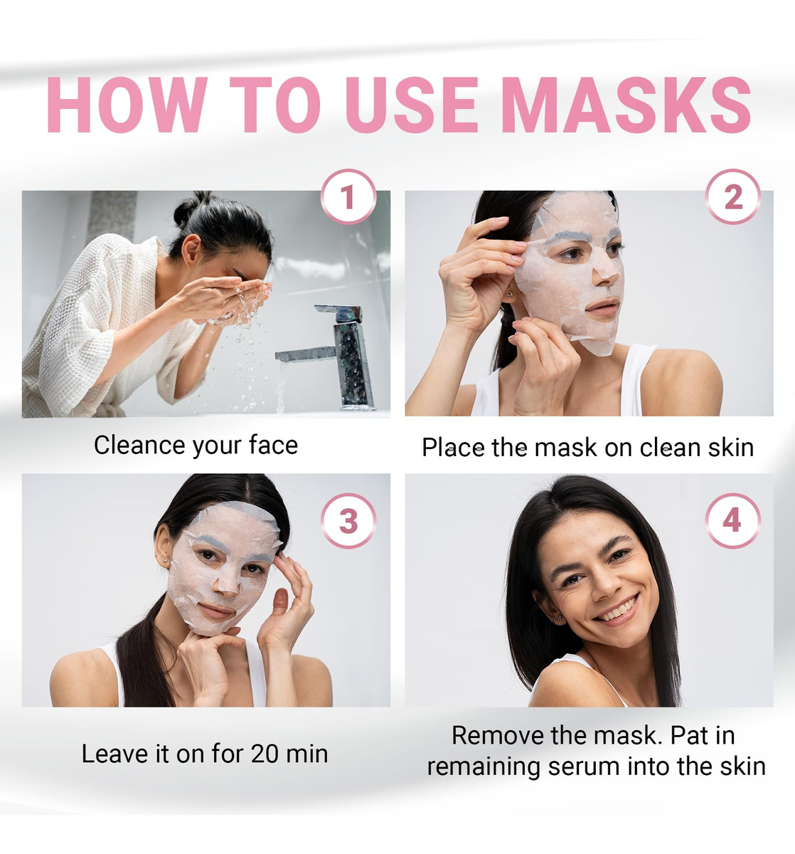 Esta máscara hidratante de colágeno para rosto ajuda a rejuvenescer a pele com um poderoso impulso de colágeno e ceramida. Juntos, os ingredientes livres de crueldade nas máscaras faciais individuais fornecem hidratação, uniformizam o tom da pele, rejuvenescem as células da pele e reparam a barreira cutânea. O pacote de máscara de folha de colágeno de uso único inclui 8 máscaras seladas individualmente. Cada folha de máscara de colágeno do pacote está repleta de ingredientes naturais para acalmar a irritação, firmar a pele, proporcionar hidratação profunda e melhorar o brilho da pele. As máscaras de colágeno para pacotes faciais são um ótimo presente ou acessório de viagem. Cada máscara facial vem selada individualmente para mantê-la fresca, e seu uso não gera bagunça. É a forma ideal de relaxar e cuidar da pele. Cuidado: Evite o uso em manchas, espinhas, pele irritada ou queimada pelo sol. Pare de usar se a pele ficar vermelha, inchada ou com coceira. Se a irritação persistir após a remoção da máscara da pele, interrompa o uso imediatamente e consulte seu médico. Evite o contato com os olhos. Se ocorrer contato, enxágue bem os olhos com água. Somente para uso externo. Mantenha longe do alcance das crianças. – Fácil de usar: esses lençóis de máscara facial de colágeno vêm em embalagens individuais projetadas para serem aplicadas em um rosto recém-lavado. As máscaras faciais para cuidados com a pele precisam então de apenas 20 minutos de tempo de aplicação – Spa Feel: A máscara facial para rugas e linhas finas oferece uma sensação de luxo no espaço de uma aplicação de 20 minutos. A máscara facial de colágeno sempre fica incrível na pele – Ingredientes poderosos: esta máscara facial contém colágeno e ceramida para melhorar a elasticidade e proteger a barreira cutânea. A máscara facial rejuvenescedora os fornece de uma forma que a pele pode usar – Resultados rápidos: algumas mulheres veem os resultados da máscara facial de rugas em apenas uma aplicação de 20 minutos. As máscaras faciais hidratantes para mulheres ajudam a pele a brilhar – qualquer tipo de pele: esses pacotes de produtos para cuidados com a pele facial são adequados para peles secas, oleosas ou mistas. Este pacote feminino de beleza e cuidado facial de 8 é uma excelente escolha para meninas à noite.