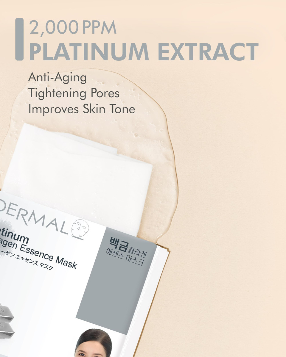 Folha de máscara facial facial facial Dermal Platinum Collagen Essence 23g – PLATINA – Contém platina coloidal que é absorvida pela pele de forma muito natural. Também é muito eficaz na remoção de oxigênio ativo nocivo da pele e mantém a pele cansada ainda mais fresca e elástica durante todo o dia. – Contém vitamina E e colágeno que mantêm a pele cansada viva e saudável – A sensação de boa qualidade, encharcada com vários minerais e ingredientes, é usada para uma absorção eficaz – Olhos a área não está completamente cortada – você pode colocá-la de volta para cobrir a pálpebra – A data mostrada na embalagem NÃO é a data de validade. É a data de fabricação.