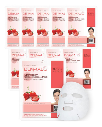 Pacote de 10 máscaras faciais coreanas Dermal Strawberry Collagen Essence — Controla o sebo e suaviza a pele — Lençol hipoalergênico que não agride a pele — Hidratação calmante de morango: desfrute das propriedades rejuvenescedoras da MÁSCARA DE ESSÊNCIA DE COLÁGENO DE MORANGO, enriquecida com 10.000 ppm de extrato de morango. Essa máscara controla a produção de óleo, trata as células mortas da pele e mantém a pele macia e luminosa. Oferece um efeito refrescante que revitaliza a pele cansada, promovendo elasticidade e uma tez radiante. Perfeito para uso diário para obter e manter uma aparência saudável e vibrante. – NUTRIÇÃO PODEROSA PARA A PELE: experimente a combinação potente de colágeno hidrolisado (2.000 ppm), vitamina E, pantenol e beta-glucano. Juntos, esses ingredientes nutrem profundamente a pele, deixando-a macia e resistente aos estressores diários. – HIPOALERGÊNICA E AMIGÁVEL À PELE: Nossa máscara foi criada para atender às necessidades de todos os tipos de pele, incluindo as sensíveis. É hipoalergênico e feito com ingredientes livres de crueldade e que não agridem a pele, garantindo sempre um tratamento seguro e suave. – FÁCIL APLICAÇÃO: Para obter os melhores resultados, aplique a máscara DERMAL Collagen Essence na pele limpa e seca. Deixe agir por 15 a 20 minutos antes de remover. Aplique suavemente qualquer essência restante na pele até que seja totalmente absorvida. Não é necessário enxaguar. Use 2 a 3 vezes por semana para uma sensação de pele revitalizada. – MÁSCARAS COREANAS CONFIÁVEIS: Confie na DERMAL, uma renomada autoridade em cuidados com a pele com mais de 200 milhões de máscaras vendidas em todo o mundo. Nossa máscara de essência de colágeno oferece uma experiência totalmente nutritiva que mima sua pele, mantendo um compromisso com a qualidade e a eficácia.