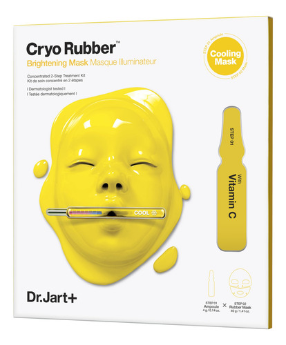 Máscara facial iluminadora Dr.Jart+ Cryo Rubber | Korean Skin Care, 1,41 onça – O que há nela: a ampola é infundida com uma mistura de niacinamida e vitamina C. – Aumenta o brilho e refresca a pele. – Resultados clínicos após 1 uso: Reduziu a temperatura da pele em 11F. – *Teste clínico em 20 mulheres de 20 a 60 anos usando o produto uma vez.
