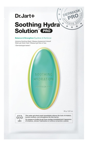 Máscara facial Dr.Jart+ Dermask Soothing Hydra Solution para pele visivelmente irritada | Máscara de lençol | Cuidados com a pele coreanos, 0,92 onças — O que há nela: o complexo de alívio calmante Dr.Jart+ com betaglucana lipossomizada, além de alantoína, oferece vantagens calmantes para a pele. O pantenol fortalece a barreira protetora. O inositol melhora os níveis de umidade da pele com aparência e sensação de frescor. – 92% disseram que deixa a pele tranquilizada**. – Após um uso: melhora imediatamente a hidratação em +115%, * proporciona um efeito calmante instantâneo na sensação da pele, uma barreira cutânea mais forte e hidratação durante todo o dia. – *Teste em 32 mulheres após usar o produto uma vez. **Testes com consumidores realizados em 100 mulheres após o uso do produto uma vez. – Livre de: álcool, sem glúten, parabenos, ftalatos, sulfatos e ingredientes de origem animal.