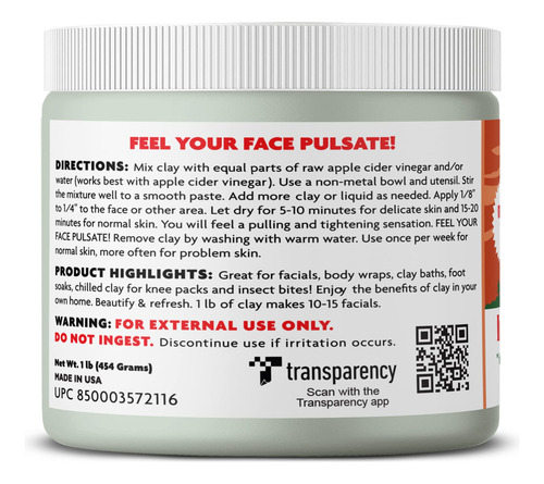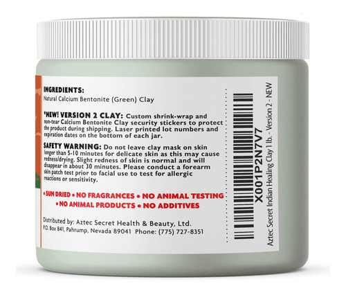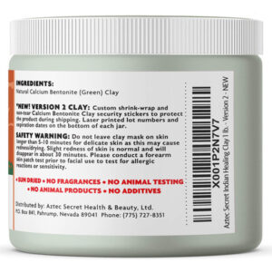 Aztec Secret Indian Healing Clay 1 kg Máscara facial e corporal para limpeza profunda dos poros A argila bentonita de cálcio 100% natural original Nova versão 2 Aztec Secret Indian Healing Clay é uma máscara facial, capilar e corporal para limpeza profunda dos poros Argila bentonita de cálcio 100% natural, ótima para tratamentos faciais, bandagens corporais, banhos de argila, máscaras capilares, joelheiras de argila gelada, picadas de insetos e muito mais – Embrulhado com um adesivo de segurança de argila bentonita de cálcio que não rasga na tampa Nota importante: Não deixe a máscara de argila na pele por mais de 5 a 10 minutos por pele sensível; isso reduzirá a vermelhidão/secagem. Uma leve vermelhidão da pele é normal e geralmente desaparece em cerca de 30 minutos – Nota importante 2: Somente para uso externo. Faça um teste de adesivo na pele do antebraço antes do uso facial para testar reações alérgicas ou sensibilidade. Funciona melhor quando misturado com vinagre de maçã