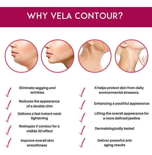 Você pode ser tão bonita por fora quanto por dentro, graças aos cuidados antienvelhecimento da Anacis Vela Contour. Este creme dinâmico atua como um removedor de queixo duplo, mas não para por aí. Se você tem um rosto bonito e jovem, não deixe que a pele flácida ao redor da mandíbula o sobrecarregue e prejudique sua vida social. Esqueça os cremes hidratantes simples que são pesados, gordurosos e não condicionam a pele. Use o leve Creme Firmador Vela Contour V da Anacis para esculpir sua pele com sua fórmula firmadora de pescoço. Recupere um contorno limpo ao longo da linha da mandíbula e um formato de rosto aprimorado graças à maior firmeza que você experimenta em cada aplicação. Aproveite esta oportunidade para recuperar a suavidade e a textura com este creme e sérum de ação rápida. Você pode remodelar o contorno do seu rosto para obter um efeito 3D perceptível. – Recupere sua mandíbula juvenil: o conjunto V-Line de alta qualidade da ANACIS oferece um poderoso efeito restaurador, ajuda a esculpir e modelar a pele sob o queixo e pescoço, ajudando você a recuperar uma aparência de linha V mais definida. – Usando ingredientes da melhor qualidade, o sérum de máscara repara, hidrata e nutre profundamente sua pele. Reduza os sinais de envelhecimento, pescoço flácido e queixo duplo. O conjunto Anacis V-Line reduz os sinais visíveis de envelhecimento no queixo e pescoço para que a pele pareça mais firme, levantada e tonificada de maneira mais uniforme. – Para ampliar os benefícios da máscara Vela Contour, o conjunto inclui uma alça de pescoço confortável e ajustável. Feita com materiais macios e respiráveis, essa pulseira abraça suavemente a mandíbula e o pescoço, fornecendo pressão consistente para suportar os efeitos firmadores. Por meio de propriedades aprimoradas de circulação e tonificação, a alça de pescoço contribui para um queixo, pescoço e mandíbula mais firmes e contornados, tudo sem a necessidade de procedimentos invasivos. – Segredo de beleza coreano: experimente o encanto do conjunto coreano V-Line. Rejuvenesça e hidrate sua pele, obtenha uma linha V mais firme e mais definida e queixo duplo menos visível — Feito na Coreia de alta qualidade: fabricados na Coréia, esses lençóis elásticos de alta qualidade oferecem um forte efeito lifting, apertando e modelando eficazmente a linha do rosto para uma aparência mais jovem.