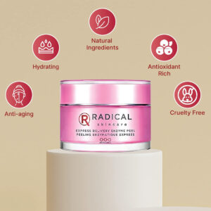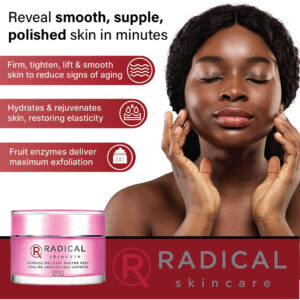 Esfoliante e limpador de máscara facial Radical Skincare Express Delivery — Revele uma pele macia, macia e polida em minutos | Livre de parabenos e crueldade | Resultados clinicamente comprovados (1,7 onças) — EXPRESS ENZYME PEEL: revele uma pele suave e radiante em apenas alguns minutos. Esta fórmula poderosa inclui 11 enzimas de frutas, incluindo mamão, abóbora e abacaxi, que trabalham juntas para esfoliar suavemente a pele, revelando uma tez mais brilhante e jovem. – HIDRATAÇÃO PROFUNDA E ANTIENVELHECIMENTO: hidrate e dê volume à pele com este peeling. Antioxidantes potentes na fórmula, combinados com ingredientes nutritivos como manteiga de karité e ácido hialurônico, trabalham juntos para proporcionar hidratação profunda e reduzir a aparência de linhas finas e rugas. – NATURAL E SUAVE: Formulado com enzimas naturais de frutas e antioxidantes que tornam esse peeling suave para a pele. Perfeito para todos os tipos de pele, incluindo pele sensível, e livre de substâncias químicas nocivas como parabenos, sulfatos e ftalatos. – RICA EM ANTIOXIDANTES: A tecnologia Trylacel permite a concentração máxima de ativos para distribuição máxima a todos os tipos de pele e mantém a potência antioxidante e o desempenho do creme para oferecer o máximo de benefícios e resultados de alta qualidade rapidamente – Livre de crueldade e parabenos.