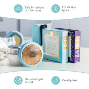 Máscara facial ativada FOREO Make My Day UFO para pele seca e desidratada, pacote com 7, hidratante e antipoluição, ácido hialurônico e algas vermelhas, fórmula limpa, livre de crueldade, compatível com todos os dispositivos OVNI – Uma máscara facial luxuosa que deixa a pele com aparência, sensação de hidratação e proteção – O ácido hialurônico e o extrato de algas vermelhas ajudam a proteger a pele dos efeitos nocivos dos radicais livres e da poluição – Livre de ftalatos