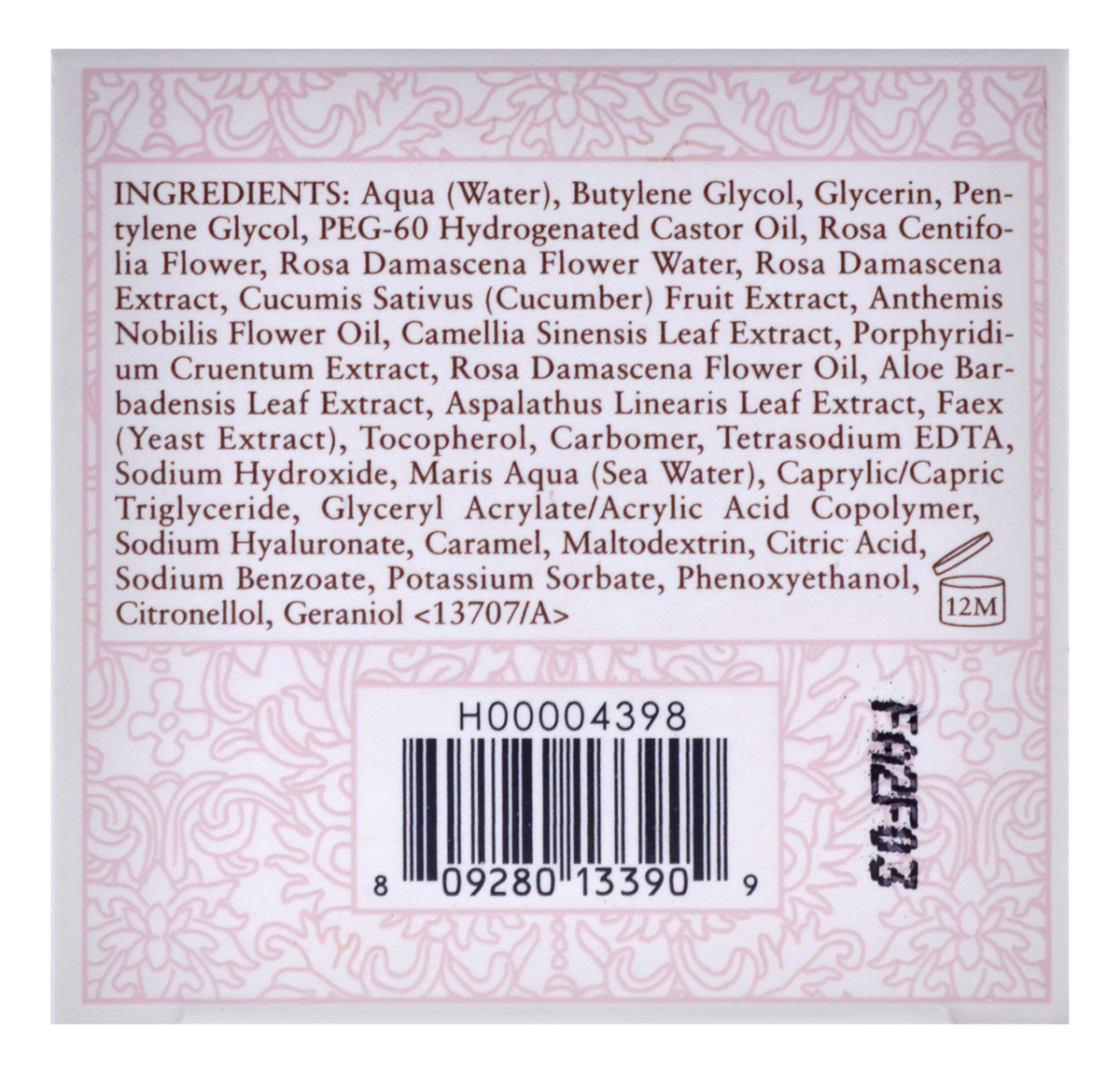 Esta máscara facial encharca a pele com extrato de rosa damasco para ajudar a melhorar a hidratação, deixando a pele macia e macia. Água de rosas, extrato de pepino e gel de aloe vera atuam para refrescar e acalmar instantaneamente todos os tipos de pele. Além disso, cheira a rosas frescas. Combinação normal, seca, oleosa.
