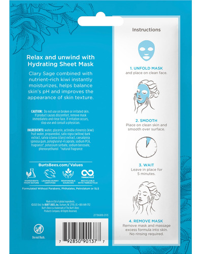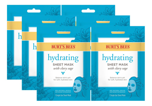 Máscara facial hidratante Burt’s Bees com sálvia, máscara de lençol de uso único, 6 unidades (a embalagem pode variar) — MÁSCARA FACIAL DE USO ÚNICO: hidrate instantaneamente sua pele com esta máscara hidratante única da Burts Bees que melhora a textura e limpa a pele, removendo a sujeira, o óleo e a maquiagem; a embalagem pode variar — MÁSCARA FACIAL HIDRATANTE: Clary Sage e uma mistura botânica de flores e plantas ajudam a promover uma aparência saudável exion – MÁSCARA FACIAL NATURAL: Esta máscara facial de origem 99% natural é formulada para todos os tipos de pele, incluindo pele sensível – TESTADOS POR DERMATOLOGISTAS: Burts Bees A máscara hidratante em lençol é testada por dermatologistas e oftalmologistas e formulada sem parabenos, ftalatos ou petrolato – BURTS BEES SKIN CARE: transforme a pele seca em pele rejuvenescida e hidratada com as máscaras faciais de uso único da Burts Bees para uma tez naturalmente bonita.