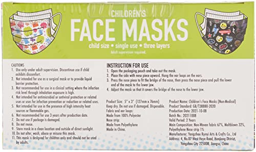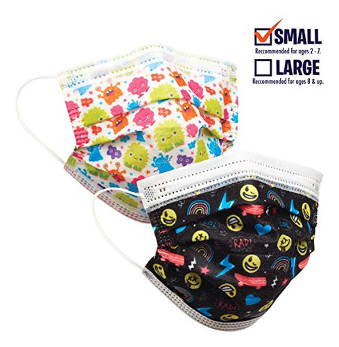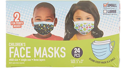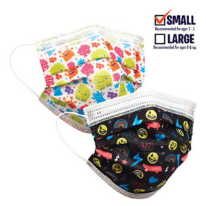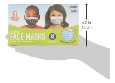 Por trás de cada máscara há um sorriso. Incentive seu filho a usar uma máscara facial com esses designs divertidos. Cada máscara apresenta uma faixa nasal de contorno e três camadas de proteção, incluindo uma camada protetora de tecido, uma camada de filtro e uma camada interna macia. Para usar a máscara facial, coloque a lateral com a parte nasal voltada para cima. Pendure as presilhas nas orelhas. Pressione a peça nasal para encaixar na ponte nasal, depois pressione a peça nasal e puxe a ponta da máscara até a mandíbula inferior. Ajuste a máscara para que ela cubra a ponte do nariz até a mandíbula inferior. As máscaras servem para a maioria das crianças de 2 a 7 anos. Tamanho do produto 5 x 3.