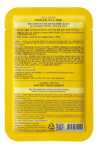 Eleve sua rotina de cuidados com a pele com nossa MÁSCARA MACIA DE PELE DE MEL LABOTICA, uma solução versátil projetada para atender a uma ampla gama de questões de cuidados com a pele. Esta máscara aproveita o poder do extrato de mel para fornecer hidratação profunda, aumentar a elasticidade e estimular a síntese de colágeno para uma pele mais firme e com aparência mais jovem. Ideal para quem tem pele seca, linhas finas, manchas escuras ou pele propensa a acne, nossa máscara oferece resultados impressionantes que farão você se sentir feliz. Redescubra a alegria de uma pele hidratada e macia enquanto nossa máscara macia Honey Skin repõe a umidade, deixando sua pele irresistivelmente suave. Diga adeus às linhas finas e rugas, pois o extrato de mel faz sua mágica, promovendo elasticidade juvenil e uma aparência mais radiante. Se você está procurando um tom de pele uniforme ou alívio para problemas relacionados à acne, nossa máscara versátil tem o que você precisa. Transforme sua rotina de cuidados com a pele com a MÁSCARA MACIA LABOTICA HONEY SKIN e abrace a beleza radiante que você merece. Recomendado para: – Pele seca – – Perda de elasticidade – – Linhas finas e rugas – Pele opaca e sem brilho – – Manchas escuras e tom de pele irregular – – Pele propensa a acne – – Danos UV – MÁSCARA DE PELE MACIA COM MEL Bee-you-tiful with Honey Skin Soft Mask. O extrato de mel fornece hidratação profunda, aumenta a elasticidade e a síntese de colágeno para uma pele firme e elástica. Essa máscara facial rica em nutrientes deixa uma pele macia, saudável e brilhante; alivia a pele problemática ao reduzir a vermelhidão; e uma tez mais saudável e equilibrada. Perfeito para peles sensíveis e com tendência a acne. Desfrute dos benefícios de cuidados com a pele de qualidade profissional com o uso diário higiênico no conforto de sua casa. – CHÁ DE MEL CALMANTE Para pele propensa a acne, fique atenta aos dias claros! Infundida com extrato de mel, um poderoso antioxidante, ácer açucarado e camomila, essa máscara brilhante ajuda a acalmar a pele irritada e reduzir a vermelhidão. Ajuda a controlar o excesso de sebo, acalma e acalma. Esta máscara facial de mel ajuda a manter uma pele clara e saudável, ideal para controlar a acne e a pele seca. É sua nova solução relaxante para uma pele mais limpa na qual você pode se sentir confiante. – EQUILIBRA O TOM DE PELE IRREGULAR Esta máscara combate a acne e ajuda a prevenir surtos de acne, reduz a vermelhidão e a irritação e equilibra com eficácia os níveis de óleo e umidade, fornece hidratação para ajudar a manter o equilíbrio da umidade, controla o excesso de sebo, limpa as células mortas da pele, melhora o tom da pele, oferecendo uma solução abrangente para peles problemáticas. É livre de parabenos, fenoxietanol, corantes artificiais, etanol. Esta máscara de qualidade premium vem em embalagens de uso único de 20 ml/0,68 fl. oz por pacote. — Para um tom de pele uniforme e suave. Especialmente projetada para pele seca, perda de elasticidade, linhas finas e rugas, pele opaca e sem brilho, manchas escuras e tom de pele irregular, pele propensa a acne e danos UV, esta máscara facial fornece nutrientes ricos com eficácia à pele esgotada, aumenta a produção de colágeno, melhora a aparência de linhas finas e rugas, oferecendo uma solução abrangente para peles problemáticas. Essas máscaras de alta qualidade são seguras para peles sensíveis com uma fórmula não irritante para uma pele mais lisa e uniforme. – LEADERS QUALITY ASSURANCE Fabricado na Coreia do Sul pela Leaders, uma renomada marca de cuidados com a pele com seu próprio centro de P&D e instalações de produção, cada produto passa por testes rigorosos para garantir a mais alta qualidade e eficácia. As máscaras LABOTICA Honey Skin Soft são fáceis de usar: limpe com um limpador e um tom suaves. Remova a máscara da bolsa e ajuste aos contornos faciais. Deixe agir por 10 a 20 minutos para obter os melhores resultados. Massageie suavemente o soro restante no rosto e pescoço até que seja totalmente absorvido.