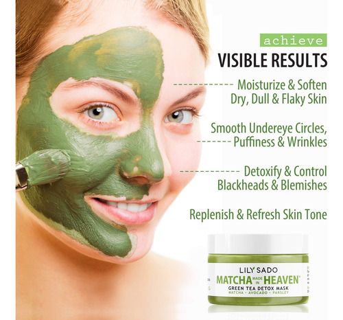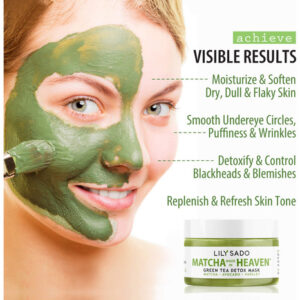 – Purifique, desintoxique e embeleze! – Esta máscara facial cremosa e deliciosa libera seu rosto de poluentes e toxinas para revigorar e refrescar seu rosto em minutos. O chá verde matcha e o abacate fornecem antioxidantes ricos em nutrientes, vitaminas e ácidos graxos saudáveis para fornecer a melhor defesa contra acne, cravos, manchas e olheiras sob os olhos. Poderosas propriedades antienvelhecimento rejuvenescem as células da pele para reduzir as rugas e linhas finas. Segura para todos os tipos de pele.