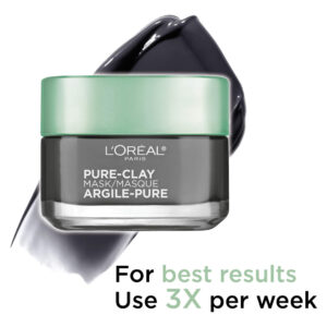 Máscara facial de argila pura L'Oreal Paris Skincare com carvão vegetal para desintoxicar e iluminar a pele, máscara de argila, máscara facial caseira, 1,7 onças. — A máscara facial de tratamento de limpeza com 3 argilas puras e carvão vegetal reduz a luminosidade e aumenta a luminosidade para resultados imediatos em casa; a pele fica mais brilhante com um brilho saudável, a pele fica mais lisa e o tom de pele parece mais uniforme – A máscara de argila pura é formulada para fornecer uma experiência luxuosa de cuidados com a pele, enquanto potentes argilas puras e carvão vegetal agem como um ímã para limpar os poros, extrair e capturar impurezas profundas, como sujeira, óleo, e poluição – Esta máscara facial cremosa e não resseca com carvão vegetal deixa a pele limpa, aveludada e reequilibrada, abordando sua pele opaca e cansada para revelar uma tez purificada, uniforme e radiante – Use após o uso, a pele está limpa como se estivesse desintoxicada, a pele parece que pode respirar melhor e a pele tem uma aparência saudável – Para obter melhores resultados de cuidados com a pele, use a máscara facial Pure Clay 3 vezes por semana, deixando por 10 a 15 minutos por uso