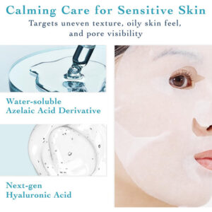 -Máscara facial em folha de ácido azelaico para minimizar os poros e a pele firmeUma máscara facial antienvelhecimento projetada para refinar a textura, minimizando visivelmente os poros e deixando a pele mais firme. Perfeita como parte das rotinas de máscaras faciais, cuidados com a pele ou máscaras faciais para mulheres.