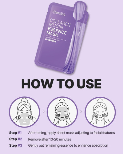 • MÁSCARA DE FOLHA DE CELULOSE KIN FRIENDLY: A Máscara Mediheal Collagen Mucin Essence é especialmente formulada com celulose derivada de plantas que se espalha e adere uniformemente à pele. Esta máscara de tecido macio contorna a pele para máxima absorção de nutrientes e efeitos aprimorados.