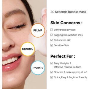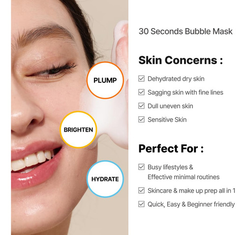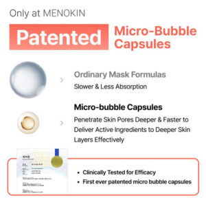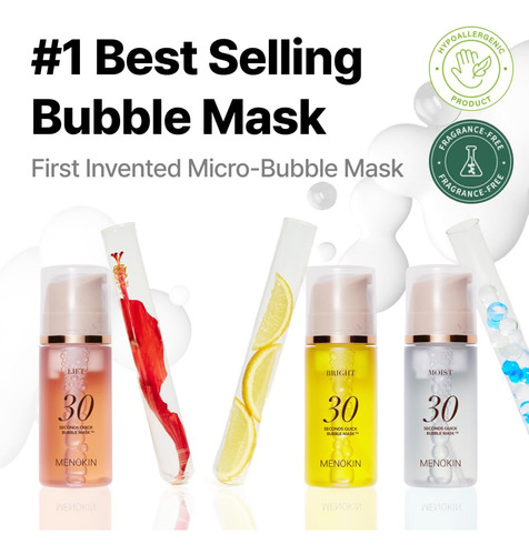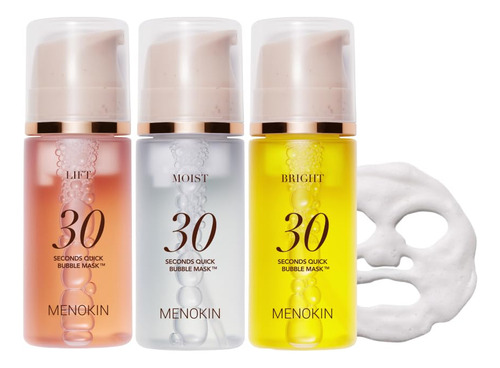 Máscara facial n 1 Milagre de 30 segundos para uma máscara de lençol de 20 minutos que brilha! Troque folhas por cápsulas Micro Bubble mergulhe diretamente na essência, sem esperar! Patenteado! Pacote de máscaras fácil de aplicar e absorver, sem lençóis Ingredientes sem fragrância e antialérgicos, beleza limpa, grau verde EWG – Cuidados de pele mínimos que economizam tempo, Menokin: obtenha um brilho de máscara de 20 minutos em 30 segundos! – Uso adequado: após a limpeza, bombeie a máscara de bolhas 2 a 3 vezes e aplique no rosto, massageando suavemente até que as bolhas sejam absorvidas. Não há necessidade de lavar com água. Aplique a bolha e massageie-a. Colágeno não oleoso e não pegajoso. – Patenteado! Máscara Quick Bubble de 30 segundos: a essência penetra diretamente com a tecnologia Micro Bubble Capsule. – Melhore seu brilho em camadas! Escolha de 2 a 3 opções, dependendo da condição da pele, e aplique camadas adequadas aos pacotes de máscaras. – Um frasco contém o equivalente a 70 máscaras de folha. (*Pode variar dependendo do uso. Com base em 2-3 bombas.)
