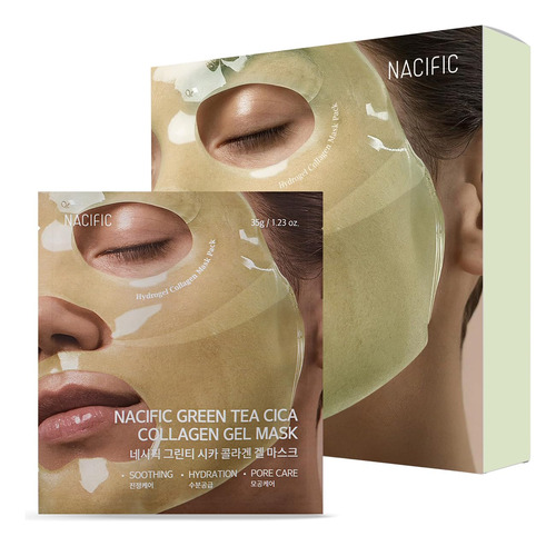 Máscara facial em gel de colágeno NACIFIC (chá verde Cica), conjunto de 4 peças, máscara facial coreana de hidrogel profundo que hidrata a elasticidade durante a noite e firma os poros de todos os tipos de pele – CUIDE DA VITALIDADE DA PELE – Maçã, extrato de chá verde e solução de teca melhoram a textura da pele para uma aparência mais limpa e suave – HIDROGEL TRANS – Absorve um frasco inteiro de essência de colágeno na pele e fornece cuidados firmes com a pele – HIDRATAÇÃO PROFUNDA – O colágeno derrete diretamente na pele e mostra um efeito imediato de melhoria da elasticidade – Minimiza os poros: o triangular impecável fórmula fortalecedora que melhora a base da pele, deixando-a mais macia e hidratada – NUTRIÇÃO COMPLETA – O chá verde Cica Essence hidrata a pele a noite toda