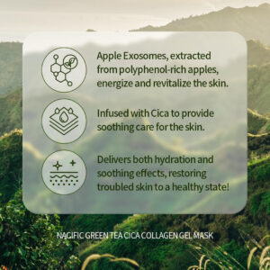 Máscara facial em gel de colágeno NACIFIC (chá verde Cica) Conjunto 4EA Máscara facial coreana de hidrogel hidratante, elasticidade noturna que minimiza os poros para todos os tipos de pele – Cuidados com a vitalidade da pele – Maçã, extrato de chá verde e solução de teca aprimoram a textura da pele para uma aparência mais limpa e suave – HIDROGEL TRANS – Absorve um frasco inteiro de essência de colágeno na pele, proporcionando cuidados firmes à pele – HIDRATAÇÃO PROFUNDA – O colágeno derrete diretamente na pele e mostra um efeito imediato de melhoria da elasticidade – MINIMIZA OS POROS – A fórmula triangular perfeita que melhora a base da pele, deixando-a mais suave e hidratada – NUTRIÇÃO COMPLETA – Chá Verde Cica Essence fornece hidratação à pele durante toda a noite