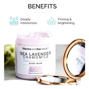 Máscara de hidratação noturna para dormir com vitaminas e beleza marinha Esta máscara facial suave contém ingredientes à base de plantas que hidratam e hidratam profundamente, deixando você com uma pele jovem e brilhante. Esta máscara facial à base de ervas contém antioxidantes, retém a umidade e suaviza a textura irregular da pele. Uma máscara facial noturna que refresca e rejuvenesce a pele cansada. Nossa máscara facial reafirmante contém lavanda marinha e camomila para acalmar a vermelhidão, atenuar manchas e combater erupções cutâneas. O resultado é uma pele mais clara, suave e com aparência mais jovem. Sobre Vitamins and Sea Beauty Seas the day! A abundância de recursos naturais e de beleza pura do mar ajudam a revitalizar, nutrir e reter a umidade em nossa pele. As plantas marinhas são ricas em vitaminas, minerais, proteínas e aminoácidos… tudo o que precisamos para o equilíbrio e o funcionamento adequados do corpo. Essas plantas fornecem propriedades hidratantes e restauradoras, ao mesmo tempo que defendem contra o envelhecimento, protegem contra os danos causados pelo sol e ajudam a prevenir a acne. Ocorrendo naturalmente dentro e ao redor de nossas grandes massas de água, os ingredientes de nossa linha de vitaminas e beleza marinha promovem uma pele jovem e brilhante. – MÁSCARA FACIAL HIDRATANTE PARA DORMIR – Uma máscara facial hidratante que hidrata e acalma profundamente a pele para uma tez equilibrada e rejuvenescida. Deixe esta máscara facial calmante fazer o trabalho enquanto você dorme! – SEA LAVENDER – Máscara facial para pele sensível formulada com lavanda marinha. Repleto de antioxidantes e propriedades calmantes que acalmam a vermelhidão, a irritação e aumentam a produção de colágeno na pele. – CAMOMILA – Ajuda a atenuar manchas, reduzir cicatrizes de acne e combater erupções cutâneas. Uma máscara facial calmante que refresca a pele cansada e suaviza as rugas para uma aparência mais jovem. – FÁCIL DE USAR – Basta aplicar uma fina camada dessa máscara facial antienvelhecimento no rosto e pescoço antes de dormir, evitando o contato com os olhos. Deixe durante a noite. Enxágue com água morna pela manhã. – PELE BONITA – Nossos produtos para a pele com algas marinhas começam com poderosos ingredientes marinhos. É nossa missão tornar essas fórmulas transformadoras facilmente acessíveis para uma pele bonita e brilhante todos os dias!