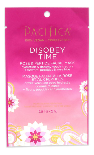 Máscara facial Pacifica Disobey Time – Rosa e peptídeo 1 unidade – A fórmula semelhante ao sérum não precisa ser enxaguada e continua funcionando mesmo quando a máscara é removida – A máscara é úmida o suficiente e fácil de usar – Hidrate a pele – Os benefícios para a pele incluem peptídeos, óleo de semente de rosa mosqueta, extrato de camomila, extrato de arroz vermelho, ácido hialurônico, romã e chá verde – Ideal para todos os tipos de pele.