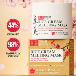 Esta máscara facial natural foi desenvolvida para derreter na pele, permitindo que os principais ingredientes penetrem na superfície da pele. Profundamente enraizada na tradição, esta máscara facial japonesa infunde a pureza da água fermentada do arroz e da niacinamida para proporcionar uma pele saudável e brilhante. Descubra uma máscara facial que é 98% de origem natural e 44% orgânica e inclui ingredientes antigos nos quais os cuidados com a pele asiáticos confiam há séculos. Esta máscara revelará uma tez mais suave, brilhante e refinada que reflete aquele brilho saudável e jovem pelo qual as mulheres japonesas são conhecidas. – ESTA MÁSCARA FACIAL ORGÂNICA é 98% de origem natural e 44% de seus ingredientes são orgânicos. Não contém parabenos, sulfatos e ftalatos e é 100% livre de crueldade – MÁSCARA DE ARROZ E NIACINAMIDA – A niacinamida é um dos ingredientes mais eficazes para clarear a pele. Ajuda a minimizar a aparência de manchas escuras e tons de pele irregulares, dando um brilho luminoso. Também é conhecida como minimizadora de poros para ajudar a reduzir os poros dilatados e refinar a textura da pele. A ÁGUA FERMENTADA DE ARROZ É um esfoliante natural que remove suavemente as células mortas da pele para revelar uma pele mais brilhante e suave. Além disso, rica em vitaminas, a Água de Arroz fornece à pele nutrientes e minerais essenciais que promovem uma pele saudável e brilhante – ESTA MÁSCARA FACIAL CREMOSA derrete na pele, permitindo que os principais ingredientes penetrem profundamente na pele, revelando uma pele mais macia, saudável e brilhante. Adicione esta máscara facial japonesa à sua rotina J Beauty para obter a tez impecável pela qual as mulheres japonesas são conhecidas – os produtos SHINBI JAPANESE BEAUTY prometem oferecer produtos eficazes para a pele que realmente funcionam. Todos os nossos produtos fornecem formulações naturais e às vezes orgânicas. Nossos ingredientes selecionados são importados do Japão e comprovadamente fornecem kagayaku hada, conhecida como “Pele brilhante”.