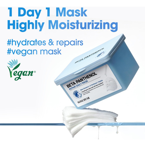 Máscara diária reparadora de beta-pantenol SOME BY MI — 30 folhas, 11,8 onças