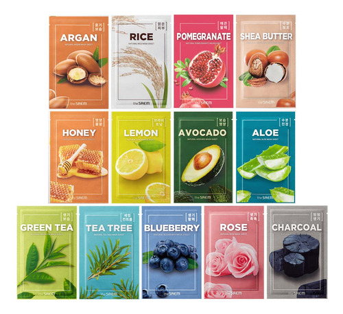 Lençol de máscara facial natural THESAEM, pacote com 13 ml Pacote combinado coreano de máscaras faciais hidratantes e nutritivas