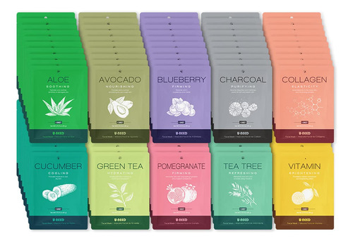 Máscara facial coreana U-NEED de 100 peças (10 tipos x 10 unidades) Terapia diária da pele K-Beauty Desfrute de 10 máscaras diferentes de frutas e vegetais (1) ALOE (CALMANTE): hidrata e acalma a pele sensível ou danificada. (2) ABACATE (NUTRITIVO): fornece nutrição extra, revitalizando a pele seca e áspera. (3) MIRTILO (REAFIRMANTE): restaura a elasticidade e a vitalidade da pele. (4) CARVÃO (PURIFICANTE): Absorve as impurezas para uma pele macia e elástica. (5) COLÁGENO (ELASTICIDADE): confere elasticidade à pele solta. (6) PEPINO (RESFRIAMENTO): Fornece umidade à pele seca e opaca. (7) CHÁ VERDE ( HIDRATANTE): Infunde umidade na pele para clarear a tez. (8) ROMÃ (REAFIRMANTE): Nutre a pele com hidratação duradoura e uma tez radiante. (9) MELALEUCA (REFRESCANTE): Refresca a pele cansada e fornece hidratação profunda. (10) VITAMINA (ILUMINADORA): Proporciona uma tez radiante. Como usar: [Etapa 1] Aplique a máscara de lençol uniformemente no rosto. [Etapa 2] Deixe secar por 15 a 20 minutos e depois retire. [Etapa 3] Depois de remover a máscara, massageie suavemente a essência restante para melhor absorção. Feito na Coréia | Sem parabenos e sem álcool | Sem testes em animais – HIDRATAÇÃO SUPERIOR: experimente hidratação intensa com nosso sérum abundante para manter seu rosto hidratado. – FOLHA NATURAL: É feita de TENCEL ecológico, extraído de eucaliptos, garantindo uma textura suave e sedosa que é suave para peles sensíveis. – VÁRIOS TIPOS: (1) Aloe (2) Abacate (3) Mirtilo (4) Carvão (5) Colágeno (6) Pepino (7) Chá verde (8) Romã (9) Melaleuca (10) Vitamina – SEGURANÇA: livre de crueldade, sem toxinas, sem parabenos – Fabricado na Coreia do Sul