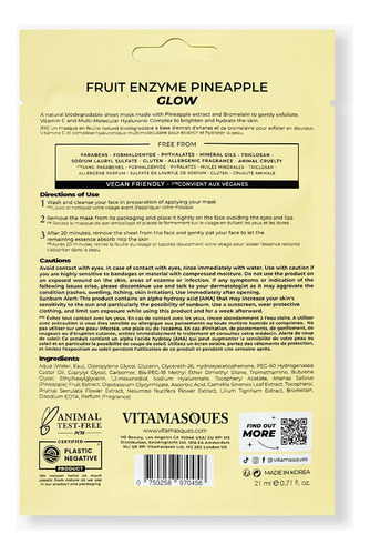 Máscara Facial Vitamasques Pineapple Pacote Com 7 Unidades