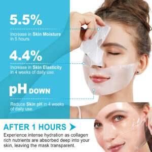 Máscara lifting de colágeno profundo Xsvseie Máscaras de hidrogel com baixo teor molecular Máscara facial hidratante noturna para firmar, elasticidade e hidratação para todos os tipos de pele – Máscara de colágeno: a máscara de colágeno real de colágeno Xsvseie enriquece o nanocolágeno, a pequena molécula absorvível de colágeno hidrata rapidamente a superfície da pele e penetra profundamente na pele para criar uma pele saudável e hidratada – Ingredientes suaves: A máscara facial de colágeno contém uma variedade de ingredientes antienvelhecimento, incluindo colágeno, vitamina E, extrato de rosa… etc. Rica em superhidratantes ácido hialurônico, nutre profundamente a pele e a deixa mais firme, lisa e elástica, reduz as linhas finas e as rugas – Máscara antirrugas: esta máscara profunda de colágeno repleta de probióticos e filtrado de fermentação de fermento de galactose fornece cuidados intensivos para a pele seca, acalma e repara a barreira cutânea por meio de hidratação poderosa para prevenir o envelhecimento da pele – Máscara facial noturna: não apenas repara os estados da pele, mas também melhora o tom de pele irregular, a rugosidade e outros problemas, fazendo com que a pele brilhe com saúde. Você pode usá-la como uma máscara noturna após o básico cuidados com a pele, rotina para hidratação e rejuvenescimento intensos durante a noite – Para todos os tipos de pele: esta máscara de colágeno é feita com ingredientes naturais e não irritantes. Uma peça de máscara profunda de colágeno equivale a usar um frasco inteiro de líquido essencial, que é nutritivo para obter uma pele radiante e jovem, adequada para todos os tipos de pele para uso diário
