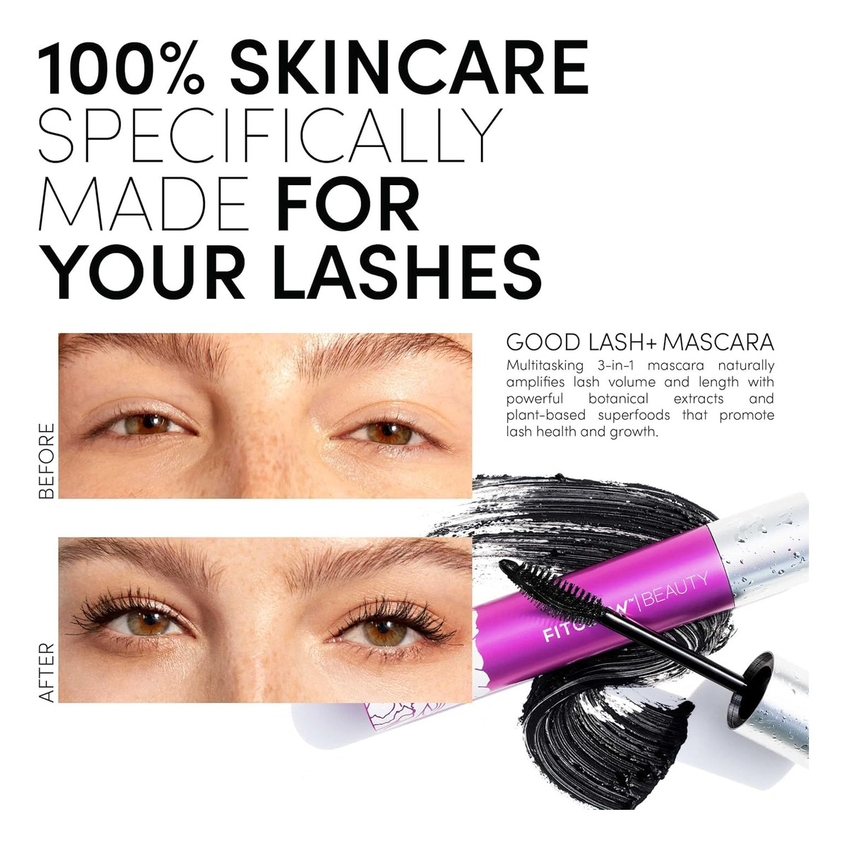 Fitglow Beauty — Máscara natural Vegan Good Lash+ | Clean Beauty, livre de crueldade, de propriedade feminina (preta, 0,3 fl oz | 8 ml) — O que é: uma máscara vegana multitarefa 3 em 1 que amplifica o volume e o comprimento dos cílios com um pincel de dupla face e ativos vegetais. – O que faz: este rímel, soro-condicionador melhora a aparência dos cílios em um banheiro No dia a dia, o Plus fornece potentes vitaminas e antioxidantes para ajudar os cílios a ficarem mais grossos, mais densos e mais cheios. Cílios frágeis e quebradiços são fortalecidos e protegidos por emulsão orgânica, evitando quebras e deixando os cílios ricos e cheios. – Por que adoramos isso: agora com nossa nova tecnologia de escova dupla face Sky High Lift + Curl! O lado do pente levanta e o lado da escova dá volume, dando aos cílios uma curvatura e corpo que abrem os olhos. – PRINCIPAIS ATIVOS: O extrato da planta de rabo de cavalo fortalece os cílios e as sobrancelhas, pois a cera orgânica de farelo de arroz cria um revestimento condicionador flexível nos cílios para nutrir profundamente. Os aminoácidos essenciais da proteína de tremoço rejuvenescem, evitam quebras, melhoram a espessura, + O colágeno vegetal apoia a estrutura e a maciez. – QUALIDADE LIMPA: formulado com ingredientes veganos, livres de crueldade, orgânicos e naturais. Sem parabenos, sem silicone, + 100% de propriedade feminina.