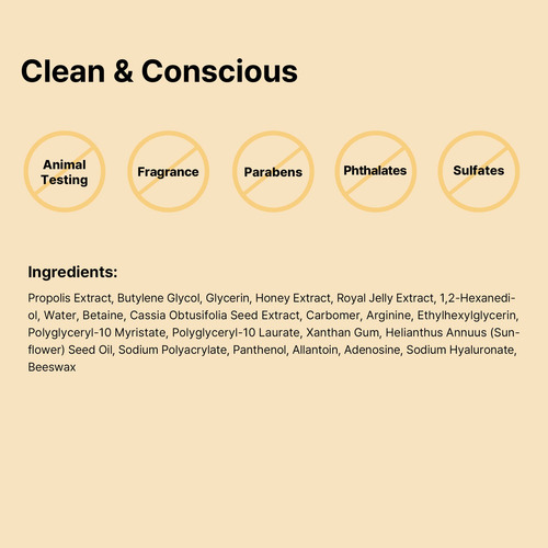 Máscara noturna de rápida absorção | Uma máscara noturna leve tipo gel fornece HIDRATAÇÃO INTENSIVA E HIDRATAÇÃO REFRESCANTE. 87,26% de extrato de própolis | Reduz a vermelhidão e ajuda no processo de cicatrização da pele estressada. Use como máscara noturna | Use no final da rotina básica de cuidados com a pele antes de dormir. Aplique uma quantidade decente na pele. Use como máscara de lavagem | Aplique uma quantidade generosa de máscara de mel e deixe agir por 15 minutos. Lave com toner ou água morna. Use como hidratante (pela manhã) | Use no final da rotina básica de cuidados com a pele e prossiga com sua etapa normal de maquiagem. – Máscara noturna de rápida absorção | Uma máscara noturna leve do tipo gel fornece HIDRATAÇÃO INTENSIVA E HIDRATAÇÃO REFRESCANTE. – 87,26% do extrato de própolis | Reduz a vermelhidão e ajuda no processo de cicatrização da pele estressada. – Use como máscara noturna | Use no final da rotina básica de cuidados com a pele antes cama. Aplique uma quantidade razoável na pele. – Use como máscara de lavagem | Aplique uma quantidade generosa de máscara de mel e deixe agir por 15 minutos. Lave com tônico ou água morna. – Use como hidratante (pela manhã) | Use no final da rotina básica de cuidados com a pele e continue com a etapa normal de maquiagem.