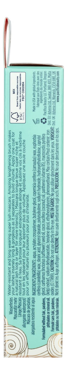 Máscara resistente à água Pacifica Aquarian Gaze (Abyss) — Escova para alongar cílios — Resistente ao desgaste — Cor de intensidade profunda — A fórmula à prova d'água separa e aumenta o volume