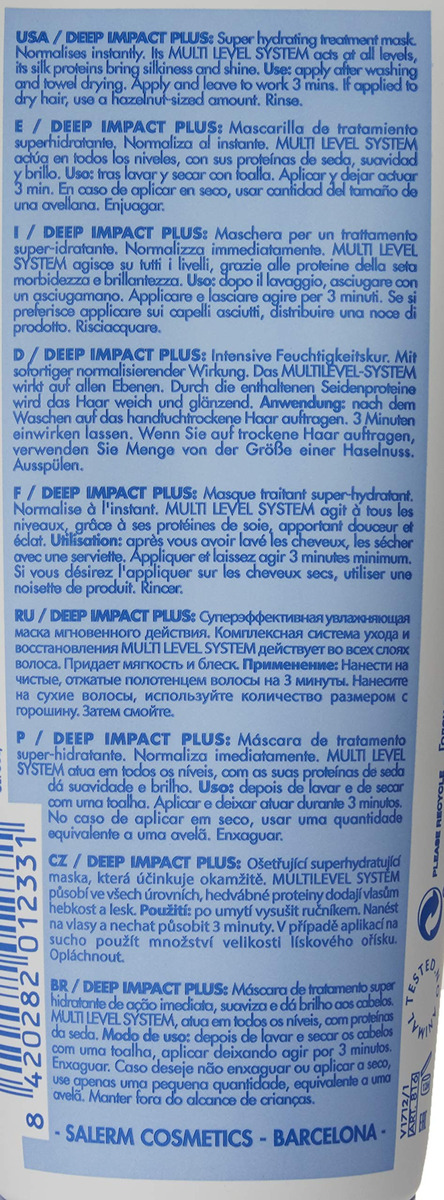 Máscara Salerm Cosmetics Keratin Shot Deep Impact Plus 200 ml – Máscara Salerm Keratin Shot Deep Impact Plus 6,9 onças – Produtos de beleza da marca – Marca: Salerm Cosmetics – Tipo de produto: Cuidados com cabelo e couro cabeludo – Free Express * à sua porta. Você não precisa pagar nada a mais!!