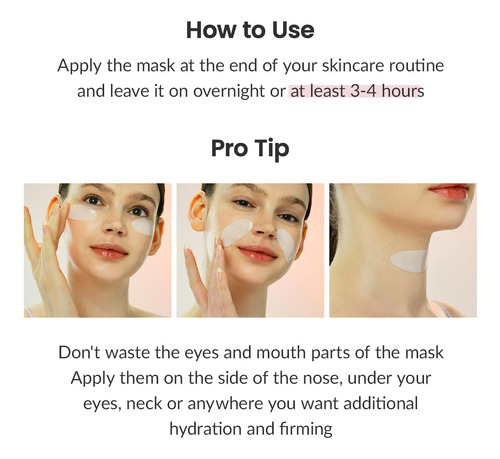 Cada frasco de ampola de 1,19 onças é sólido transformada em uma máscara de lençol. TORNA-SE TRANSPARENTE: A máscara se torna transparente após 3 horas ou durante a noite, fornecendo ingredientes ativos profundamente no interior do