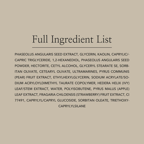 Nossos poros são os canais pelos quais o sebo sai da nossa pele. O excesso de sebo e as células mortas da pele se acumulam nesses canais, fazendo com que os poros se dilatem. Para cuidar dos poros, você precisa remover as células mortas da pele nos poros, lavar o sebo e os resíduos acumulados e, em seguida, baixar a temperatura da pele. Para os cuidados com os poros e a esfoliação, que são o início dos cuidados com a pele, encontramos os ingredientes da Terra, lar de nosso início – Nossos poros são os canais pelos quais o sebo sai da pele. O excesso de sebo e as células mortas da pele se acumulam nesses canais, fazendo com que os poros se dilatem. Para cuidar dos poros, você precisa remover as células mortas da pele nos poros, lavar o sebo e os resíduos acumulados e, em seguida, baixar a temperatura da pele. Para os cuidados com os poros e a esfoliação, que são o início dos cuidados com a pele, encontramos os ingredientes da Terra, lar do nosso início – [Textura de argila úmida] A formulação hidratante de lama macia ajuda a absorver o sebo e remover resíduos sem ressecamento ou rigidez. Ao mesmo tempo, proporciona uma sensação refrescante e refrescante. – [Extrato de feijão vermelho Haenam 30%] O feijão vermelho tem sido um importante ingrediente herbal ao longo da história da Coréia, bem como um ingrediente amado para cuidados com a pele. As mulheres de Joseon, que enfatizavam o cuidado da pele que cria uma pele clara e limpa, usavam feijão mungo e feijão vermelho moídos juntos para lavar o rosto. A rica saponina do feijão vermelho ajuda na adsorção do sebo e atua como um esfoliante natural. – [Caulim] O caulim absorve o sebo, e o extrato de feijão vermelho e o pó de feijão vermelho ajudam na textura esfoliante e clara da pele.
