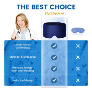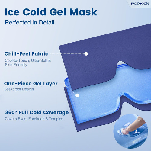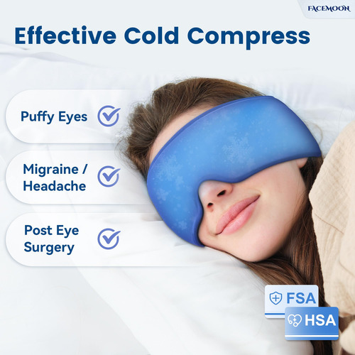 Alívio rápido: a máscara refrescante para olhos FACEMOON oferece terapia suave com frio para aliviar olhos cansados (fadiga ocular), inchaço, dores de cabeça, enxaquecas e inchaço pós-cirúrgico. Ideal para dormir, cochilos curtos ou relaxar diariamente.