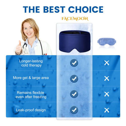A máscara refrescante para os olhos FACEMOONfoi projetada para fornecer alívio direcionado para fadiga ocular, inchaço, dores de cabeça e enxaquecas. Feito com gel espesso de grau médico, ele retém o frio por mais tempo leve à geladeira por 20 minutos para até 20 minutos de terapia calmante. O tamanho extra grande (22 x 4) oferece cobertura de 360 para olhos, testa e têmporas, enquanto a alça ajustável garante um ajuste seguro e suave para todos os tamanhos de cabeça. Ideal para reduzir olheiras, inchaço pós-cirúrgico ou tensão no tempo de tela. Macio, flexível e resistente a vazamentos, é perfeito para casa, escritório, viagens ou descanso de voo. Inclui uma bolsa de armazenamento para higiene e portabilidade. Um presente atencioso para quem busca conforto e olhos revigorados.