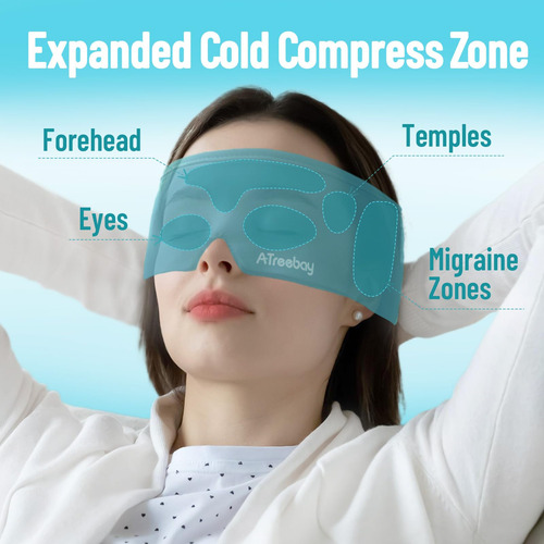 – COMPRESSA FRIA GRANDE ÁREA: Projetado para cobrir as principais áreas de enxaqueca, incluindo olhos, testa e têmporas, envolva a cabeça em 360 graus e acomoda todos os formatos de rosto e tamanhos, garantindo uma experiência suave