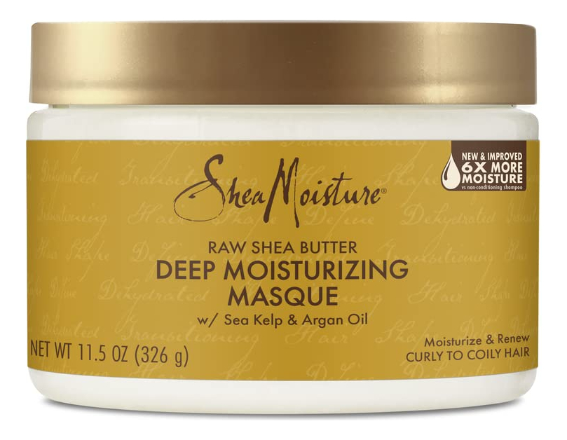SheaMoisture organic shea butter hair mask, intensive hydration for damaged hair. Shea butter, argan oil and algae. Sulfate-free, paraben-free and cruelty-free, 326g.
