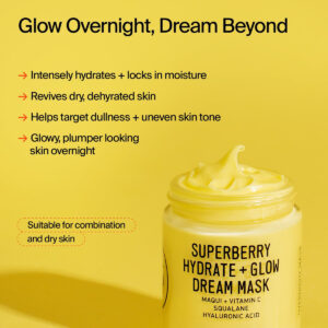 Na Youth To The People, acreditamos que os produtos que você coloca na pele devem ser tão limpos e cheios de nutrientes quanto os alimentos que você coloca no corpo. É por isso que criamos nossa máscara glow dream com ingredientes limpos e de alto desempenho, como vitamina C, goji berry, maqui berry, figos da Índia e muito mais. Todos esses ingredientes benéficos atuam em conjunto com o esqualano para aumentar a hidratação da pele, sem ter que se preocupar em obstruir os poros. Nossa máscara reafirmante de cuidados com a pele funciona melhor durante a noite, acordando você com uma pele visivelmente mais brilhante e preenchida. Esta linha de cuidados com a pele veganos oferece resultados ainda mais impressionantes se você usá-los juntos. Recomendamos limpar primeiro com nosso Superfood Cleanser, seguido por esta máscara de vitamina C e misturar nosso Glow Oil, para aumentar o brilho. Quer a sua pele esteja seca e desidratada, ou talvez um pouco opaca e você queira se concentrar no anti-envelhecimento, esta máscara facial hidratante profunda é a resposta para todos os seus problemas.