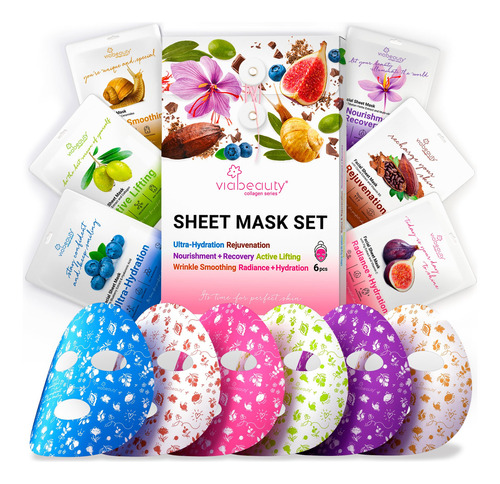 Essas máscaras faciais hidratantes sem crueldade trazem o spa para casa. Essas máscaras faciais femininas de colágeno são adequadas para todos os tipos de pele, incluindo seca e oleosa. A máscara de lençol hidratante oferece estímulos antioxidantes, tratamentos profundos para a pele, ingredientes essenciais frescos e muito mais. As folhas de máscara facial de colágeno podem proporcionar redução de rugas, desintoxicação, suavização das linhas da pele, tonificação brilhante, lifting, endurecimento, tonificação uniforme e outras propriedades rejuvenescedoras. A máscara rejuvenescedora de colágeno ajuda na tonificação para uma aparência vibrante. Esses conjuntos de máscaras são um ótimo presente para qualquer mulher que cuida de seus próprios cuidados com a pele. Ela pode experimentar todos esses diferentes tipos de máscara em um pacote conveniente. Evite usar máscaras em manchas, espinhas, pele irritada ou queimada pelo sol. Pare de usar se a pele ficar vermelha, inchada ou com coceira durante e após o uso. Se persistir após a remoção da máscara, interrompa imediatamente e consulte seu médico. Evite o contato com os olhos. Se ocorrer contato, enxágue bem os olhos com água. Somente para uso externo. Mantenha-se afastado das crianças. Estas mascarillas para la cara facial son libres de crueldad. – Alta qualidade: este pacote de máscaras faciais em lençol apresenta 6 máscaras de lençol individuais de alta qualidade. Cada ingrediente das máscaras de lençol para rosto foi selecionado por seus benefícios de uma fonte confiável – Fórmula inovadora: esses produtos para o cuidado da pele facial apresentam fórmulas inovadoras para fornecer resultados. Cada máscara facial oferece uma fórmula diferente com um benefício correspondente – Ingredientes naturais: Essas máscaras faciais para cuidados com a pele usam ingredientes naturais e comprovados. Com opções como mucina de caracol, ácido hialurônico, vitamina C, pérola, mirtilo e ceramida, elas têm de tudo – Resultados visíveis: este conjunto de cuidados faciais pode fornecer resultados visíveis em apenas 20 minutos. As máscaras faciais de beleza para mulheres oferecem hidratação, hidratação, controle de rugas, firmeza de linhas finas e muito mais. Combinação 6 em 1: este kit variado contém seis pacotes individuais, um de cada tipo de máscara. Os pacotes de máscaras são selados individualmente, tornando-os convenientes e de viagem simultaneamente